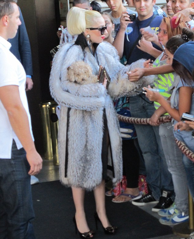 Η τραγουδίστρια φωτογραφήθηκε φορώντας τη γούνα, και κρατώντας το σκυλάκι της αγκαλιά, ενώ παλαιότερα στην τηλεοπτική εκπομπή της Ellen DeGeneres είχε δηλώσει ότι «σιχαίνεται την γούνα και δεν φοράει γούνες!».