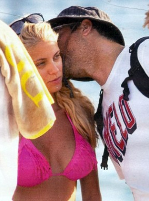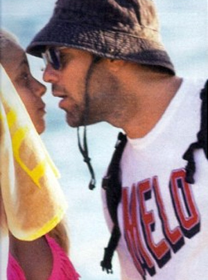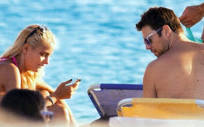 Tο ζευγάρι «άραξε» στην παραλία της Πλάκας, όπου απόλαυσε τα νερά του Αιγαίου και… τον έρωτά του.