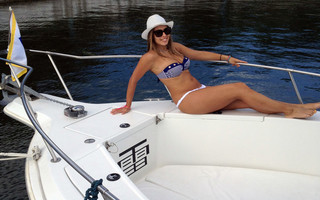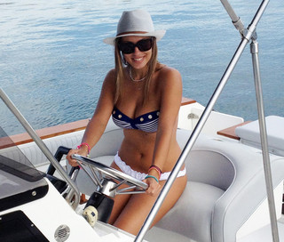 Φορώντας ένα εντυπωσιακό μαγιό σε αποχρώσεις άσπρου και μπλε, με ένα άσπρο μοντέρνο καπέλο, μαύρα γυαλιά και αρκετά βραχιόλια στα χέρια της, πόζαρε με ιδιαίτερο νάζι και χαριτωμενιά μπροστά στο φωτογραφικό φακό