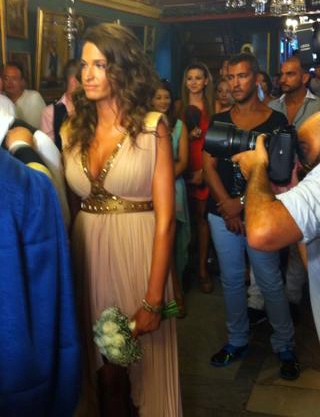 Η Εύα Λάσκαρη έφτασε στην εκκλησία λαμπερή, μέσα στο αρχαιοελληνικό νυφικό της.