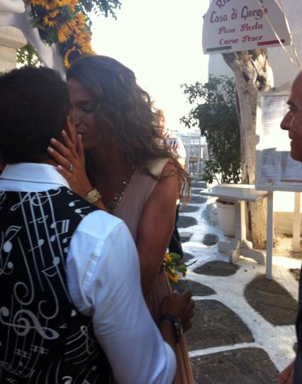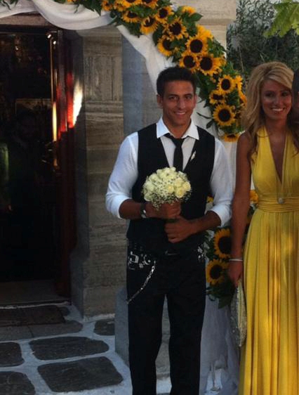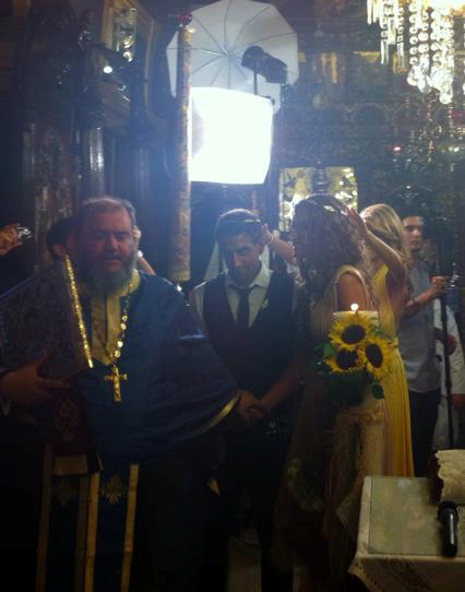 Τη νύφη στην εκκλησία συνόδευσε ο πατέρας της, ο οποίος έφτασε χθες στη Μύκονο με τη μητέρα της.