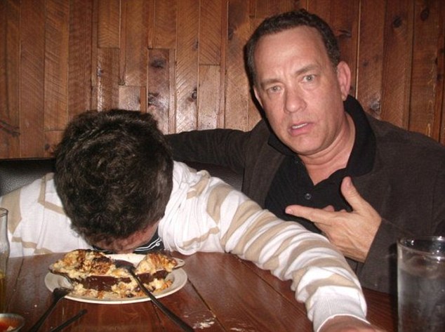 Ανάρπαστες έχουν γίνει οι φωτογραφίες με τον Tom Hanks κι έναν νεαρό που κάθονται σε ένα εστιατόριο και παριστάνουν τους μεθυσμένους. Στην πρώτη φωτογραφία ο ηθοποιός έχει «κλέψει» τα γυαλιά από τον φίλο του και όπως εκείνος έχει πέσει πάνω στο πιάτο του, ο ηθοποιός τον δείχνει και γελάει με τα «χάλια» του.