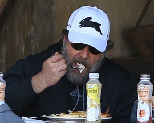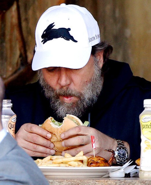 Ο πάλαι ποτέ γόης του Χόλιγουντ Ράσελ Κρόου, εθεάθη να… καταβροχθίζει ένα χάμπουργκερ αλλά και ένα κοτόπουλο, ατημέλητος, αξύριστος και με πολλά παραπανίσια κιλά.