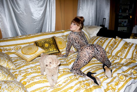 Με μια ολόσωμη, εφαρμοστή λεοπάρ φόρμα, η τραγουδίστρια παίρνει διάφορες πόζες πάνω σε ένα κρεβάτι ξενοδοχείου, την ώρα που ο διάσημος φωτογράφος αποτυπώνει στη μηχανή του τις «καυτές» πόζες.