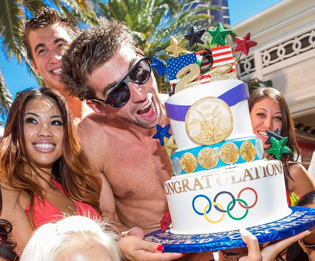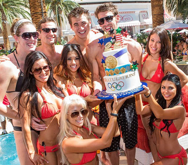 Ο 18 φορές «χρυσός» πρωταθλητής της κολύμβησης φωτογραφήθηκε σε πάρτι στο Λας Βέγκας αγκαλιά με μια τούρτα, ενώ είχε στο πλευρό του και δεκάδες πανέμορφα κορίτσια που φορούσαν κατακόκκινα μπικίνι.