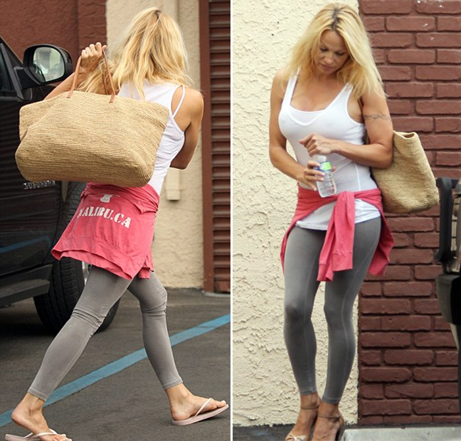 Η 45χρονη πρώην σταρ του Baywatch φωτογραφήθηκε έξω από αίθουσα χορού στο Los Angeles με τα σημάδια της κούρασης εμφανή στο πρόσωπό της.