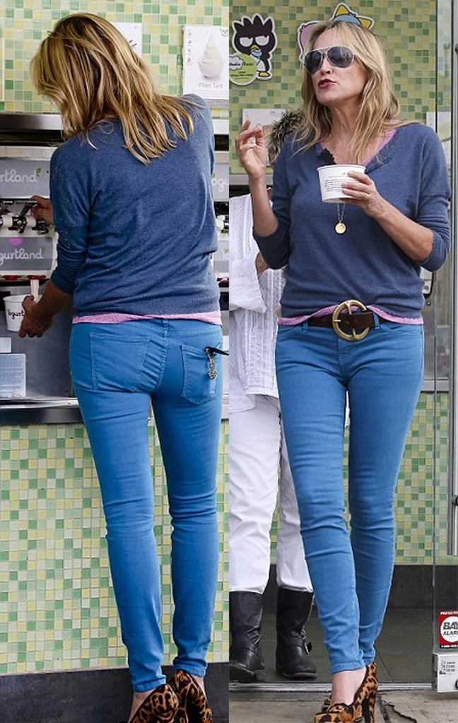 Φορώντας ένα κολλητό τζιν και λεοπάρ παπούτσια η εντυπωσιακή 54χρονη έδειχνε ανέμελη και χαλαρή, καθώς απολάμβανε το παγωμένο γιαούρτι της.