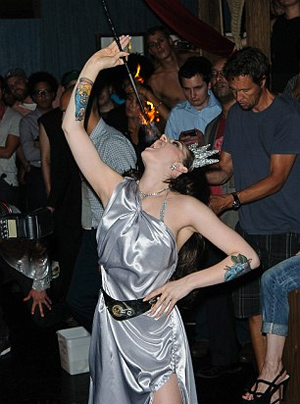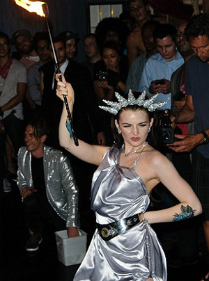 Στο πάρτι που έγινε στο Demi Monde Club, η 22χρονη από το Sunderland εμφανίστηκε ντυμένη με ένα ασημένιο φόρεμα, φορώντας στέμμα και κρατώντας έναν πυρσό, προς τιμήν του Αγάλματος της Ελευθερίας. Με το τραγούδι «American Woman» να παίζει, έβγαλε και τα λίγα που φορούσε και έμεινε με… ακόμα λιγότερα.