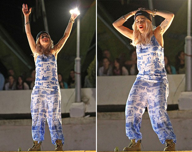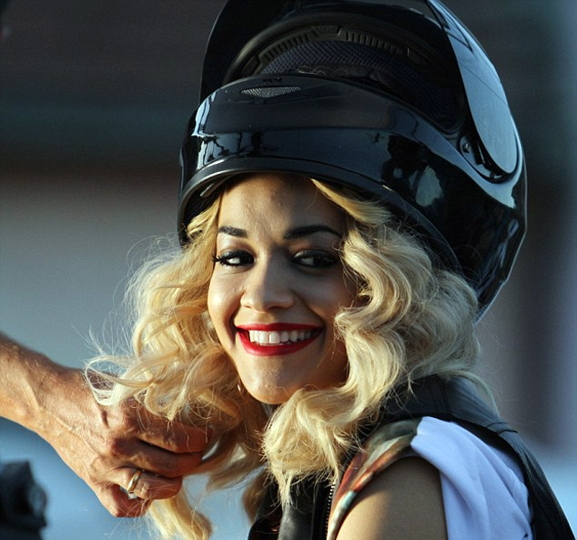Με ένα ασυνήθιστο λουκ εμφανίστηκε η τραγουδίστρια Rita Ora τη δεύτερη μέρα των γυρισμάτων του νέου της βίντεο για το single «Shine Ya Light»: φορώντας ένα φαρδύ σύνολο μπλε και άσπρο, που έμοιαζε με πυτζάμα, σε συνδυασμό με ένα φαρδύ μπουφάν, ένα μάλλινο καπέλο Dior και μπότες.