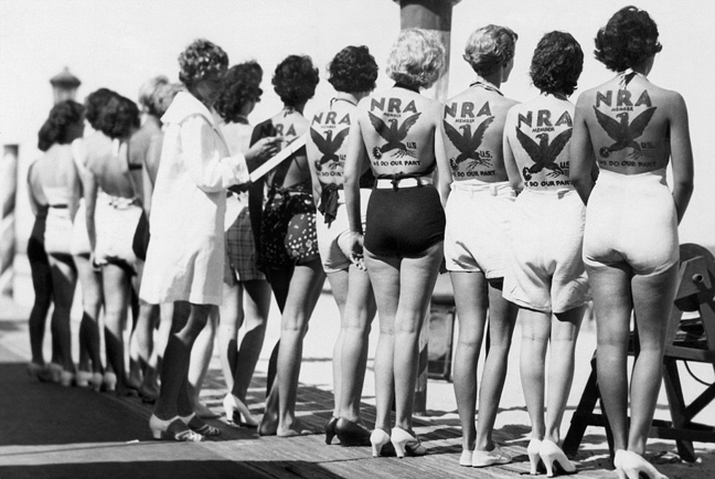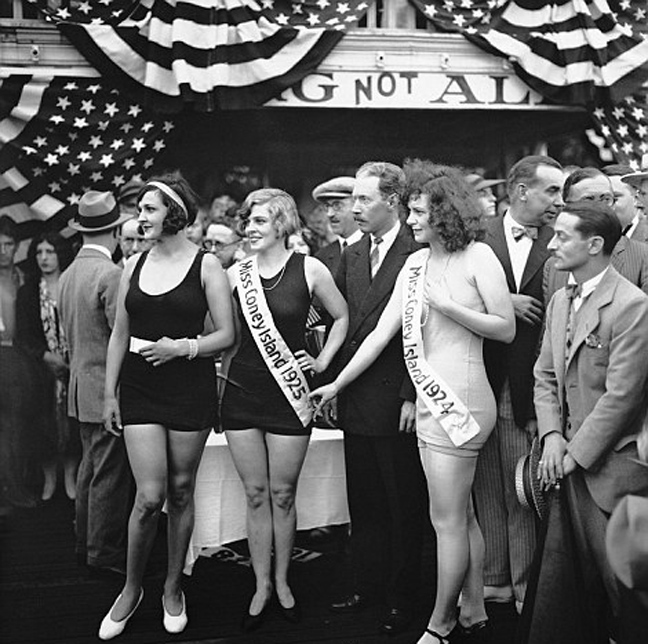 Νεαρές γυναίκες που ποζάρουν χαμογελαστές φορώντας τα μαγιώ τους μας ταξιδεύουν ακόμα και ενενήντα χρόνια πίσω, στα καλλιστεία των δεκαετιών ’20, ’30 και ’40 για την ανάδειξη της Μις Αμερική.