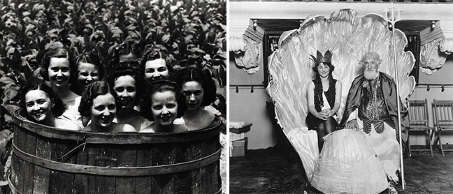 Στις φωτογραφίες αποτυπώνεται επίσης η μόδα αλλά και τα ενδυματολογικά «όρια» της εποχής: οι διαγωνιζόμενες φορούν μαγιό με πολύ περισσότερο ύφασμα από τα σύγχρονα μπικίνι…