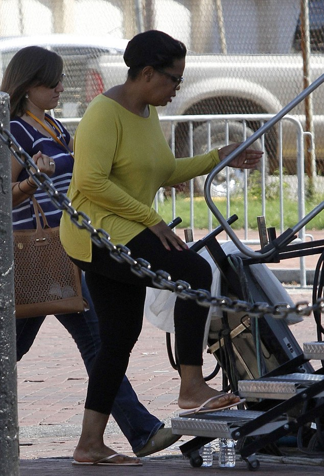 Φορώντας μια φουντωτή περούκα με γκρίζα μαλλιά και χάρη στο μακιγιάζ της, η 59χρονη Oprah δείχνει αρκετά γερασμένη και απέχει πολύ από την εικόνα της βασίλισσας της αμερικανικής τηλεόρασης.
