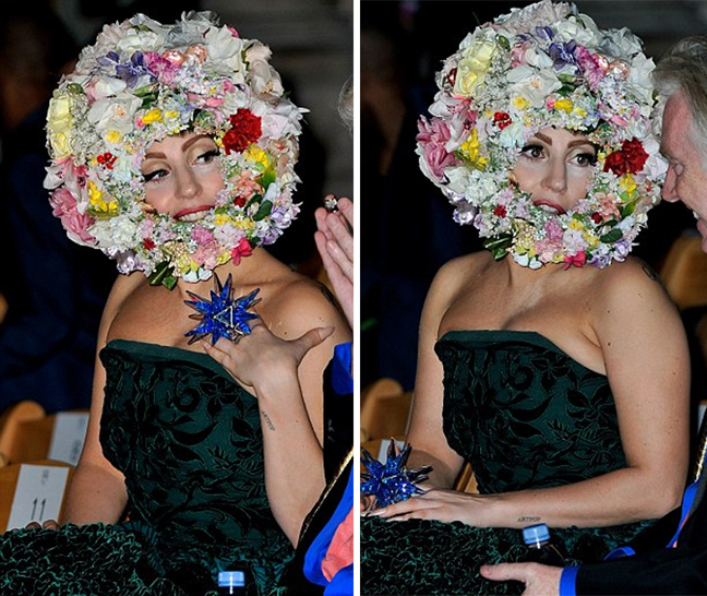 Θα μπορούσε να στολίσει την πόρτα σας την Πρωτομαγιά η Lady Gaga, έτσι όπως εμφανίστηκε στο σόου του Philip Treacy στην Εβδομάδα Μόδας του Λονδίνου.