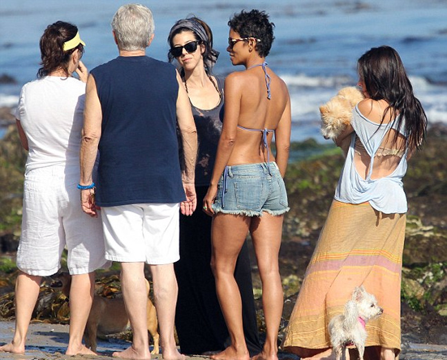 Η Halle βόλταρε ξυπόλυτη στην άμμο παρέα με μία φίλη της αρχικά και στη συνέχεια με μία ομάδα φιλόζωων που έβγαζαν βόλτα τα σκυλιά τους.