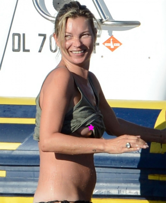 Ανέμελη απολαμβάνει τη θάλασσα της Ibiza η Kate Moss που παίζει σαν παιδί με το νερό. Μόνο που, όταν δεν φοράς το πάνω μέρος του μαγιό και επιλέγεις να μετατρέψεις σε μαγιό τη μπλούζα σου, είναι καλό να προσέχεις μέχρι πού θα τη σηκώσεις.