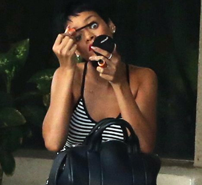 Μπορεί να έχει ένα ολόκληρο επιτελείο ειδικών που τη βοηθά να ετοιμαστεί και να τελειοποιήσει το λουκ της πριν από κάθε σόου της, αλλά η Rihanna μπορεί να τσεκάρει και μόνη της το μακιγιάζ της, όταν χρειάζεται.