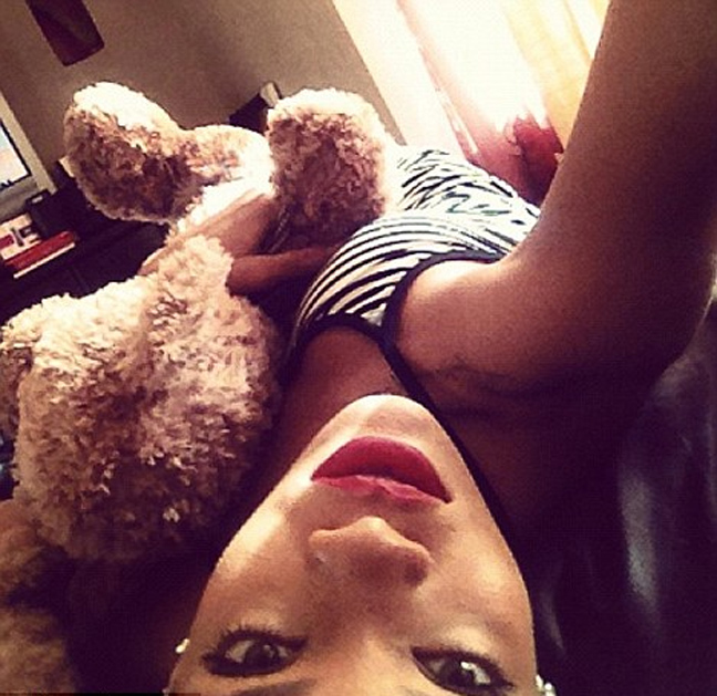 Λίγο αργότερα ανέβασε και στο twitter μία φωτογραφία με το ίδιο φόρεμα και αγκαλιά με το..αρκουδάκι της.
