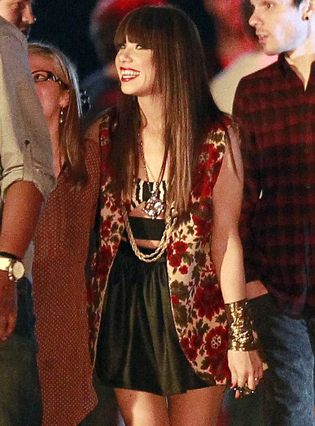 Αργότερα εθεάθη και με άλλα σύνολα, μεταξύ άλλων ένα φλοράλ γιλέκο, ένα δερμάτινο σορτσάκι κι ένα φούξια φόρεμα με παγιέτες και τεράστια μανίκια.