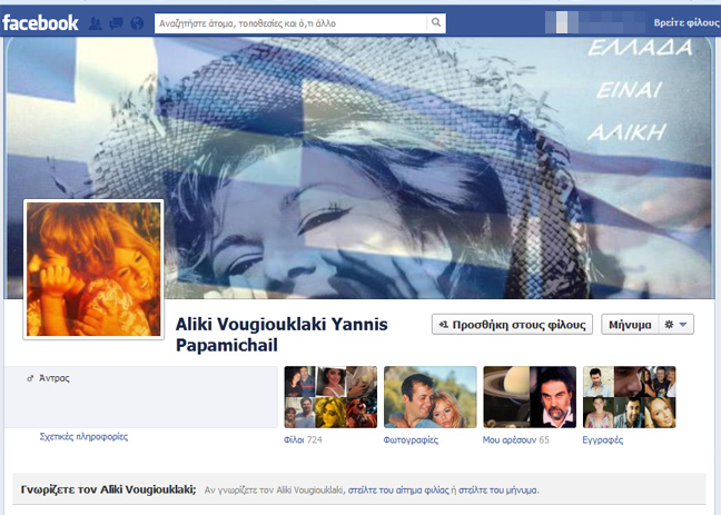 «Αγαπητοί φίλοι και φίλες , θα ήθελα να να σας ενημερώσω, ότι αναρτήθηκε στο facebook, η μοναδική επίσημη σελίδα για την Αλίκη Βουγιουκλάκη. Θα τη βρείτε πληκτρολογώντας ALIKI VOUGIOUKLAKI YANNIS PAPAMICHAIL. Μπορείτε να κάνετε αίτημα φιλίας στη συγκεκριμένη σελίδα.
