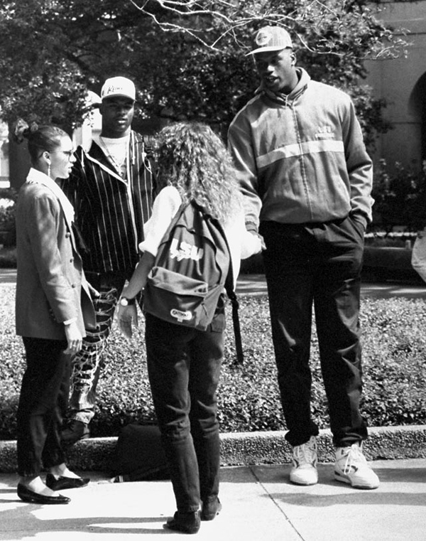 Οι Jim Jackson, Shaquille O’Neal και Alonzo Mourning ποζάρουν για τον φωτογράφο πριν από τα Draft του NBA (1991). Ο O’Neal «αρπάχτηκε» βέβαια πρώτος, αφήνοντας τη σιγουριά του LSU για το Orlando.