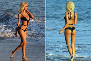 Φορώντας ένα μαύρο μαγιό με μεγάλα «κοψίματα», η 20χρονη Zahia Dehar «αναστάτωσε» τους λουόμενους στο Μαλιμπού με το θανατηφόρο κορμί της.
