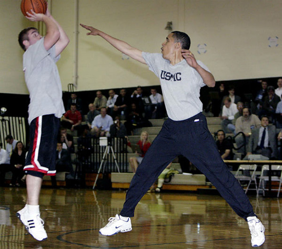 Οι περισσότερες περιοδείες του Obama κλείνουν με ένα καλό, παραδοσιακό «μονό» στο μπάσκετ…