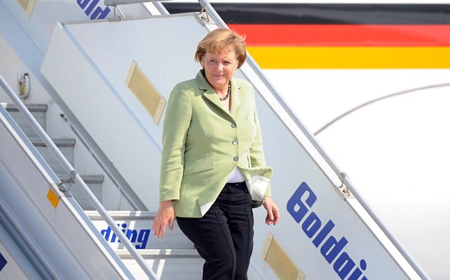 Η Άνγκελα Μέρκελ προσγειώθηκε στην Αθήνα φορώντας το ίδιο σακάκι με εκείνο που είχε επιλέξει για να δει από κοντά την αναμέτρηση Γερμανία-Ελλάδα στο Euro 2012.