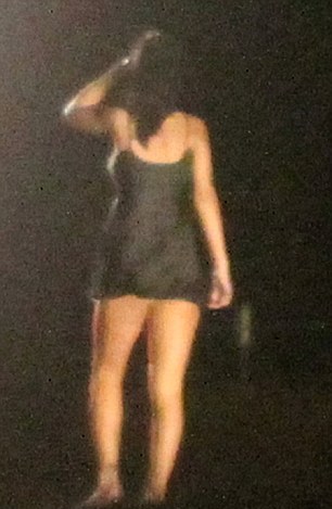 Πίσω στη δουλειά, η 24χρονη επέλεξε να εμφανιστεί με ένα μαύρο κομπινεζόν στις νυχτερινές λήψεις παρά το κρύο βράδυ του φθινοπώρου.
