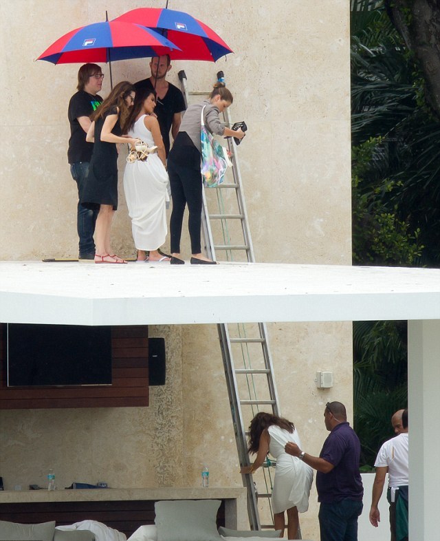 Στην φωτογράφιση η Kim εμφανίστηκε με λευκό φόρεμα ενώ στο πλευρό της βρέθηκε και η αδερφή της, Kourtney. και φυσικά ο καλός της Kanye West.