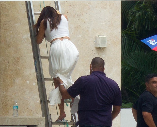 Ξινή παραλίγο να της βγει η φωτογράφιση. Η Kim Kardashian και η αδερφή της Kourtney έπρεπε να ανέβουν μία σκάλα οχτώ μέτρων και μάλιστα με γόβες στιλέτο όπως απαιτούσε το concept της φωτογράφισης.