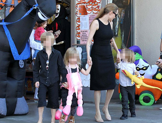 Παιδί φαίνεται πως ξαναγίνεται η 37χρονη Angelina Jolie, καθώς περνά το Halloween παρέα με τα έξι παιδιά της. Χθες ο φακός την εντόπισε με τα τρία από τα παιδιά σε κατάστημα με εποχιακά, για να προμηθευτούν τα απαραίτητα για τις ημέρες.