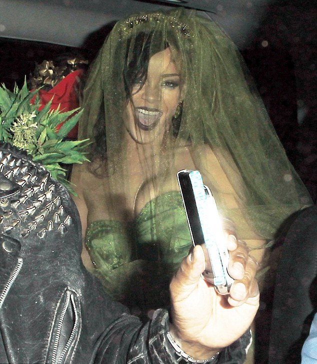 Ντυμένη στα πράσινα πήγε η Rihanna στο Halloween πάρτι και φωτογραφήθηκε στο Greystones Manor μαζί με τις φίλες της Evelyn Lozada και Shaniece Hairston.