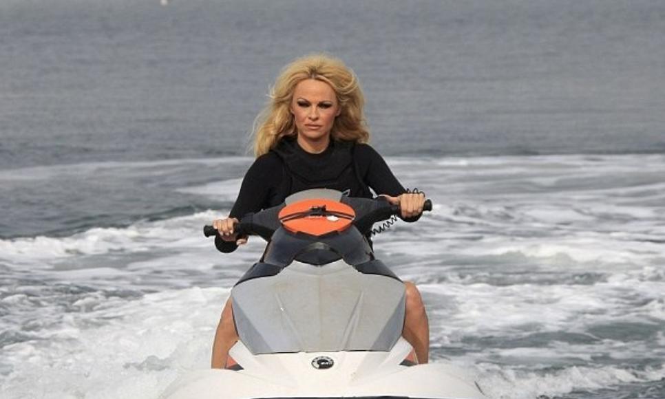 Η 45χρονη Pamela Anderson έφτασε με τζετ σκι στο πλοίο Sea Shepherd SSS Brigitte Bardot, που ήταν αγκυροβολημένο στην Καλιφόρνια και φωτογραφήθηκε πάνω σε αυτό, στο πλαίσιο καμπάνιας.