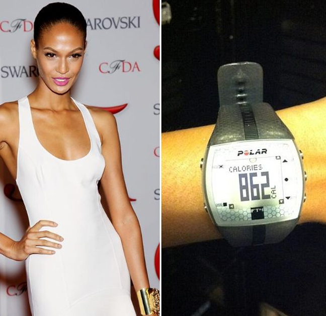 Η Τζοαν Σμολς επιδεικνύει το νούμερο των θερμίδων που έκαψε κατά τη διάρκεια της προπόνησής της
