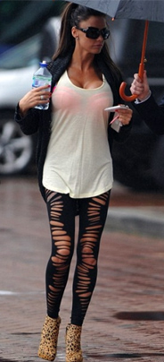 H Katie Price την έκανε πάλι τη… ζημιά της καθώς κυκλοφόρησε στο βροχερό Μάντσεστερ με ροζ σουτιέν και ημιδιάφανη λευκή μπλούζα. Η διάσημη σεξοβόμβα ολοκλήρωσε το σύνολο με μαύρο σκισμένο κολάν και λεοπάρ μποτίνια κάνοντας πολλά μάτια να στραφούν πάνω της.