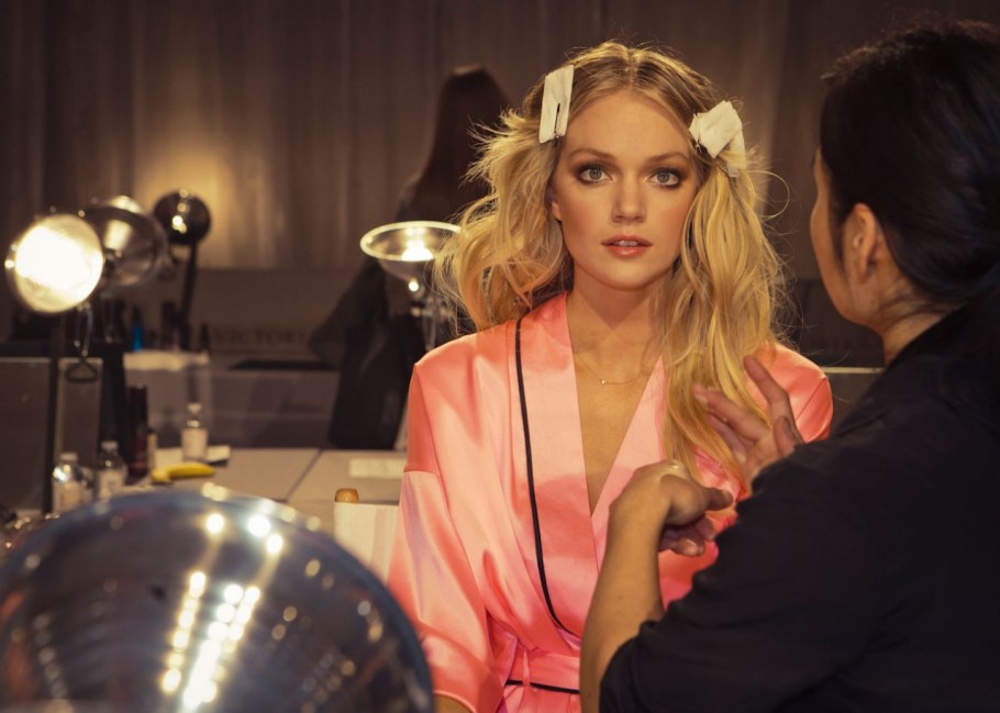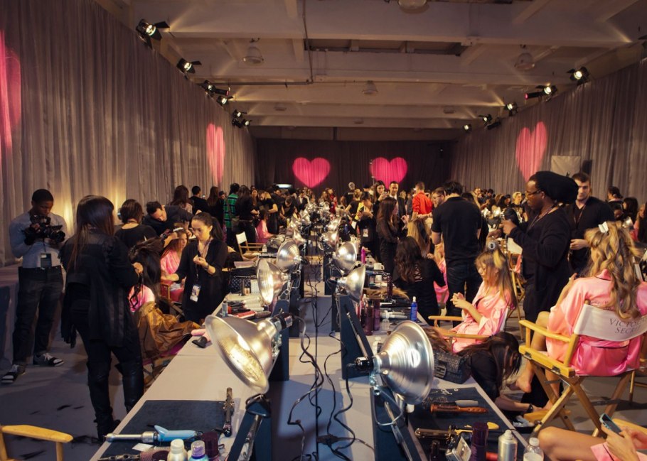 Περνώντας κανείς την πόρτα των παρασκηνίων έχει την αίσθηση ότι βρίσκεται στην αυλή του «παραδείσου»… ειδικά αν ανήκει στο αντρικό φύλο. Δεκάδες πανέμορφα κορίτσια φορώντας μόνο σατέν ρόμπες σε απόχρωση του ροζ και από μέσα τα εσώρουχα της Victoria’s Secret, αφέθηκαν στα χέρια των ειδικών καθώς πριν από τη φαντασμαγορική επίδειξη μόδας της εταιρείας εσωρούχων, ήταν απαραίτητος ο καλλωπισμός των «Αγγέλων».