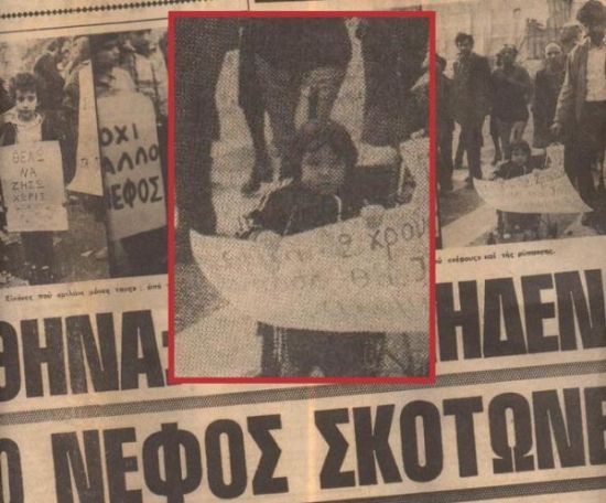 Η μικρούλα Κατερίνα κρατούσε τότε ένα πλακάτ που έγραφε: «Είμαι δυο ετών και θέλω να αναπνεύσω». Η φωτογραφία της είχε δημοσιευτεί στα πρωτοσέλιδα των «Νέων» και της «Ελευθεροτυπίας».