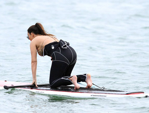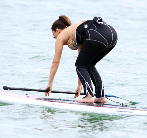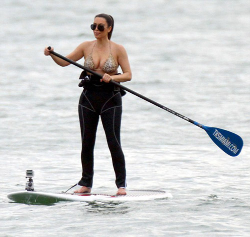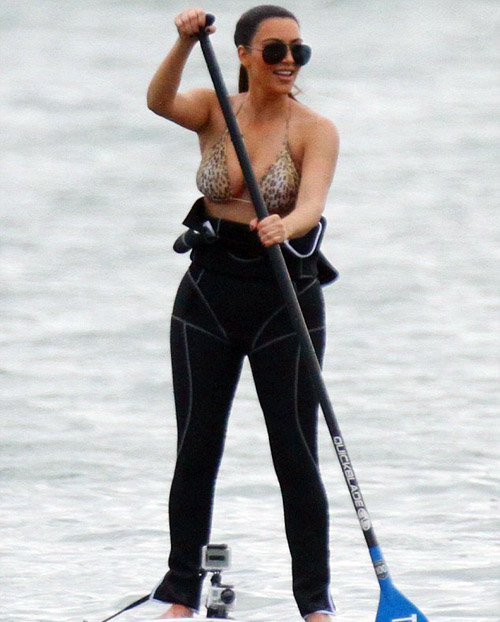 Η διάσημη τηλεπερσόνα εθεάθη στις ακτές του Μαϊάμι με λεοπάρ μπικίνι έτοιμη να τραβήξει κουπί. Μάλιστα κατέβασε το πάνω μέρος της στολής για να αφήσει το πλούσιο μπούστο της να ξεπροβάλλει μέσα από ένα λεοπάρ μαγιό.