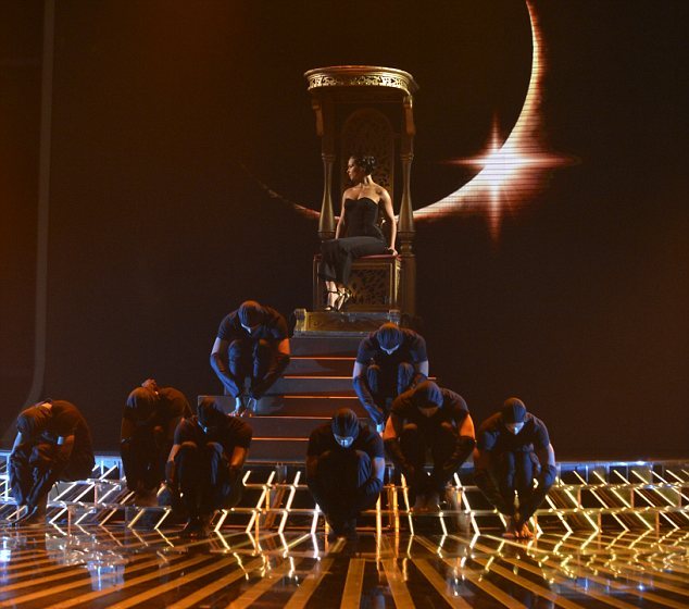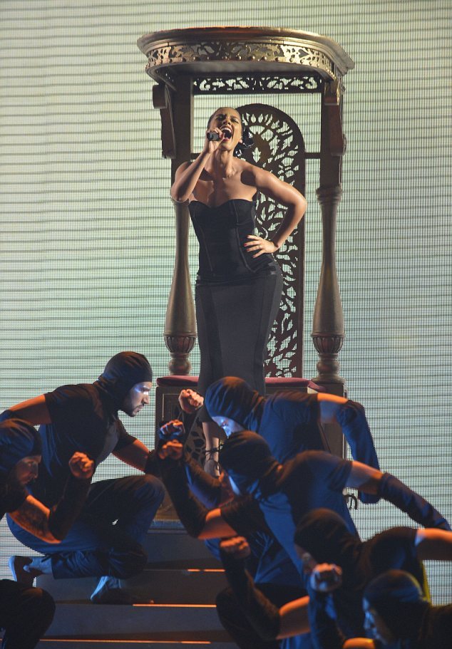 Η Alicia έκανε θεαματική είσοδο στη σκηνή καθισμένη σε ένα θρόνο ενώ ήταν περιτριγυρισμένη από νίντζα.