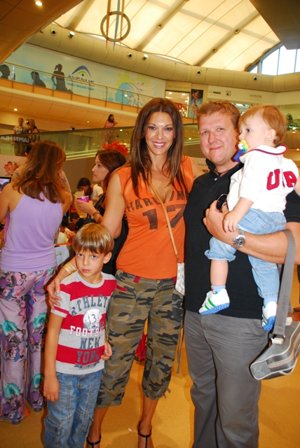 Η Ανίτα Ναθαναήλ και η Ιωάννα Σουλιώτη περιτριγυρισμένες από τα παιδιά τους ποζάρουν μπροστά από το περίπτερο του Nickelodeon.