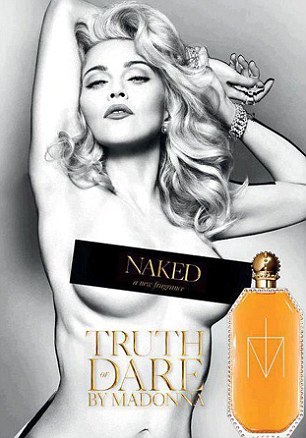 Η τολμηρή αφίσα για το άρωμα «truth or dare», «θάρρος ή αλήθεια», απεικονίζει την Madonna τόπλες με το όνομα του αρώματός της πάνω στα γυμνά στήθη της.