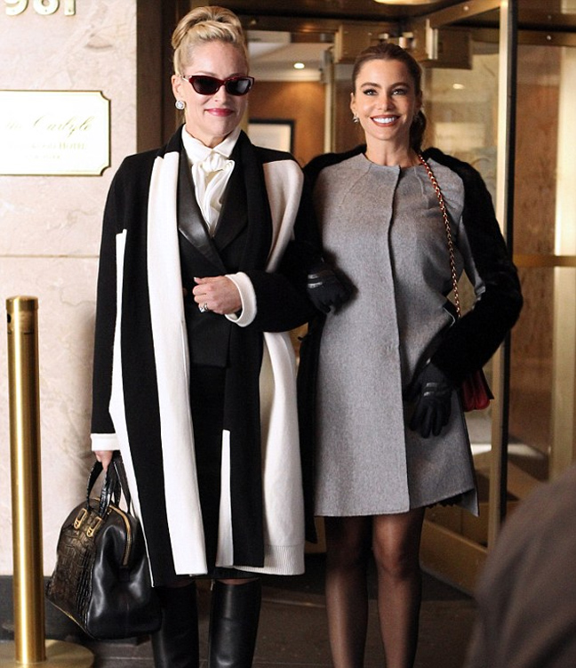 Το καστ πρέπει να απολαμβάνει τα γυρίσματα αν κρίνουμε από τις δύο κυρίες, Σάρον Στόουν και Σοφία Βεργκάρα, που φωτογραφήθηκαν ενώ έβγαιναν από το ξενοδοχείο στο οποίο μόλις είχαν γυρίσει μερικές σκηνές.