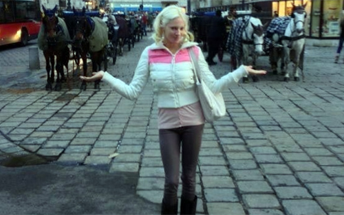 Η ξανθιά δείχνει να περνάει καλά στα ξένα.