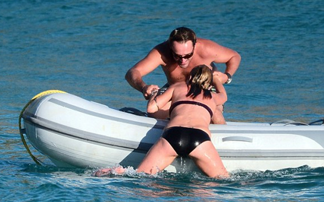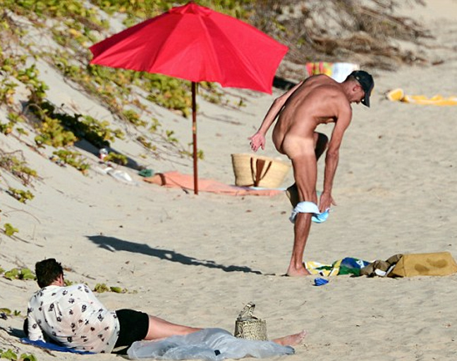 Όπως δείχνουν οι φωτογραφίες που ακολουθούν, την ώρα που το ζευγάρι απολάμβανε προσωπικές στιγμές χαλάρωσης, από πίσω τους ένας ψιλόλυγνος κύριος, με αδαμιαία περιβολή, ήταν έτοιμος να ρίξει τη βουτιά του.