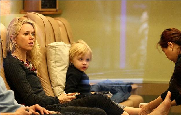 Η αλήθεια είναι ότι δεν βλέπει κανείς κάθε μέρα σε κέντρα αισθητικής μαμάδες με τους γιούς τους. Ωστόσο η Naomi Watts θέλει να κάνει το γιο της να προσέχει τα πόδια του και γι αυτό τον πήρε μαζί της για… πεντικιούρ. Ο 4χρονος Samuel Kai έδειχνε πολύ άνετος σε όλη τη διάρκεια της περιποίησης.