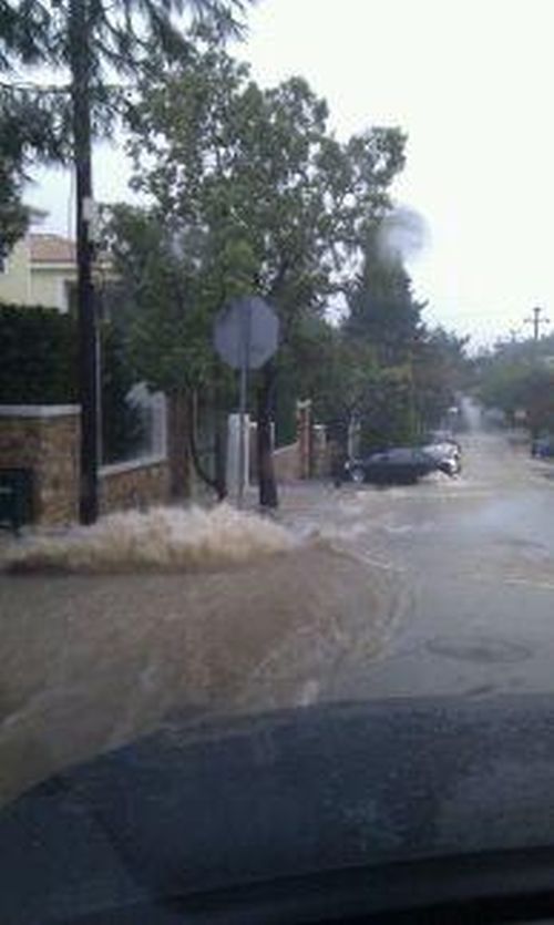 Ο δημοσιογράφος Σπύρος Χαριτάτος ενώ βρισκόταν μέσα στο αυτοκίνητο του, ξαφνικά απειλήθηκε από τα ορμητικά νερά που είχαν κατακλύσει τους δρόμους. Δείτε τις φωτογραφίες που ανέβασε ο ίδιος στο Twitter.