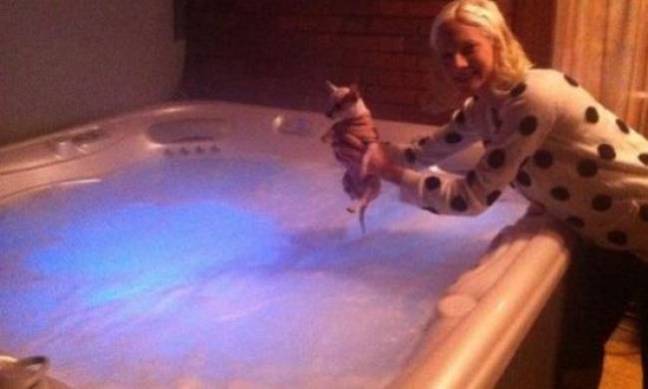 Ενώ βρισκόταν σε κάποιο σπίτι φίλων στην Αυστρία βγήκε στο μπαλκόνι όπου βρίσκεται το τζακούζι και παραλίγο να βάλει μέσα το σκυλάκι της.