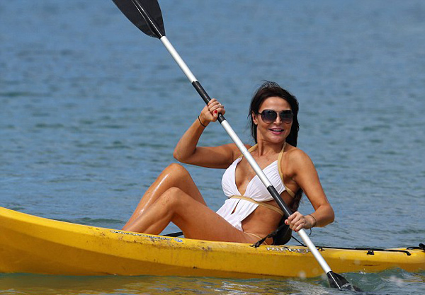 Στα 44 της χρόνια και παρά το γεγονός ότι είναι μητέρα δύο παιδιών το πρώην μοντέλο απέδειξε ότι διατηρείται σε εξαιρετική φόρμα, εντυπωσιάζοντας με τις «χυμώδεις» καμπύλες της και το αποκαλυπτικό μαγιό της.