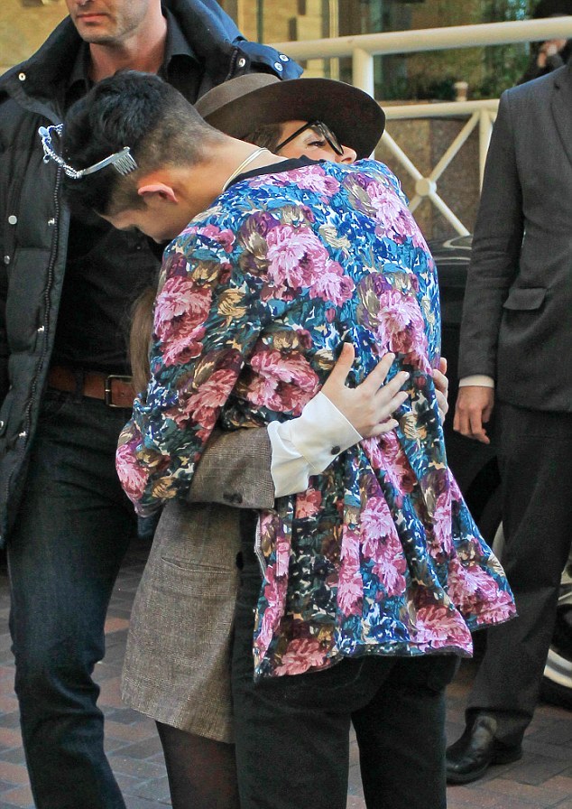 Έξω από το ξενοδοχείο της την περίμενε ένας… πολύχρωμος θαυμαστής της, με τον οποίο συνομίλησε για λίγα λεπτά.