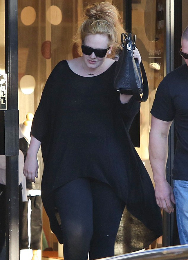 Ο φωτογραφικός φακός απαθανάτισε την Adele με ένα χρυσό κολιέ στο λαιμό, με το όνομα «Angelo». Σύμφωνα με τη Sun, αυτό είναι και το όνομα που θα δώσει στον μονάκριβό της.